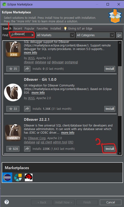 2) 검색창에 dbeaver를 검색합니다.